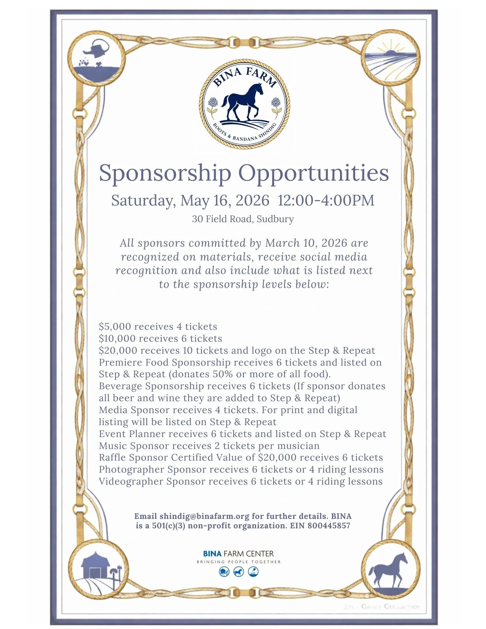BINA’S BOOTS & BANDANAS SHINDIG Saturday, May 16, 2026 - Saturday, May 16, 2026 - Saturday, May 16, 2026 - Return to Event Details Return to Event Details